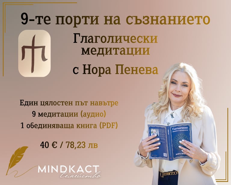 Всяка медитация отваря една вътрешна „порта“ — пространство за осъзнаване, изцеление и трансформация, водено от първите девет глаголически знака. Това не е просто практика, а път на вътрешно припомняне, който се разгръща стъпка по стъпка.