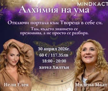 Заедно с Милена Маат ще отворим врата към дълбокото познание за ума – неговите илюзии, капани, величие и способност да се превръща в портал към Твореца. Милена е от онези учители, които не дават готови отговори, а активират вътрешния учител в теб. Срещата с нея е процес на припомняне.